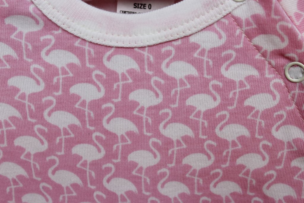 - Available in pink flamingo print for baby girls